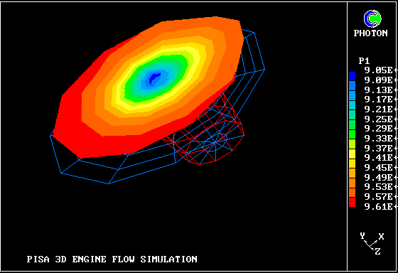 TITLE : PISA EXAMPLE - 3D ENGINE FLOW SIMULATION - DISK ENGINE WITH