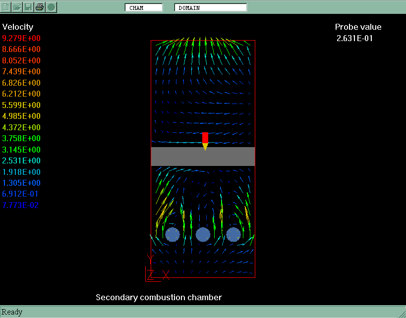 All model settings have been made in VR-Editor of PHOENICS 3.3.1. PLANT menu has been used to introduce the combustion model features.