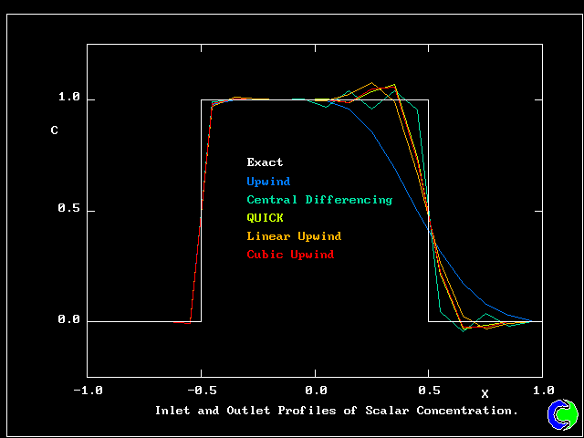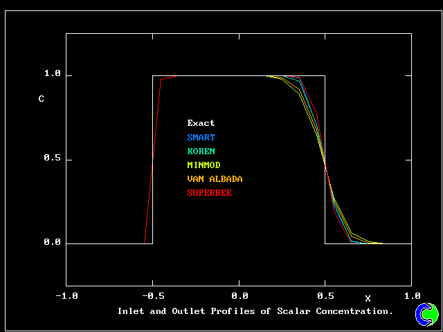 - Solutions for selected schemes are presented below, and compared with the exact solution. 1. Scalar Convection, Velocity Vectors & Streamlines 2. Scalar Convection, Scalar Contours - Upwind Scheme 3. Scalar Convection, Scalar Contours - QUICK Scheme 4. Scalar Convection, Scalar Contours - SUPERBEE Scheme 5. Scalar Convection, Scalar Profile at Y=0 - Linear Schemes 6. Scalar Convection, Scalar Profile at Y=0 - Non-Linear Schemes