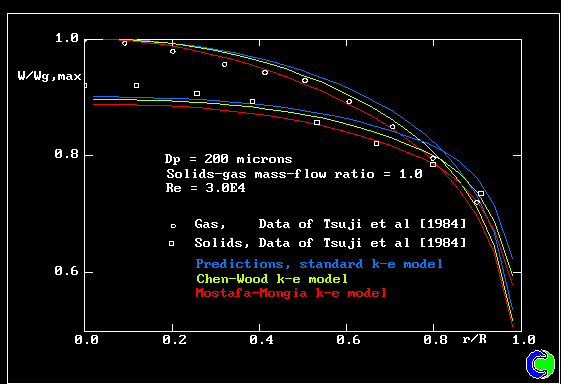 GAS-PARTICLE PIPE UPFLOW: Turbulence-energy radial profiles.