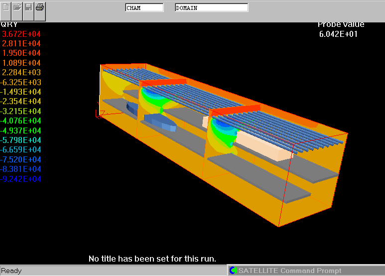The plots show the distribution of temperature and directional radiant heat flux within the oven, heater elements and loads.