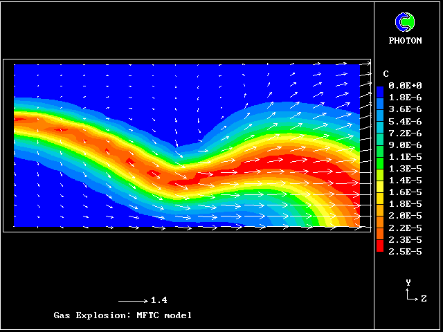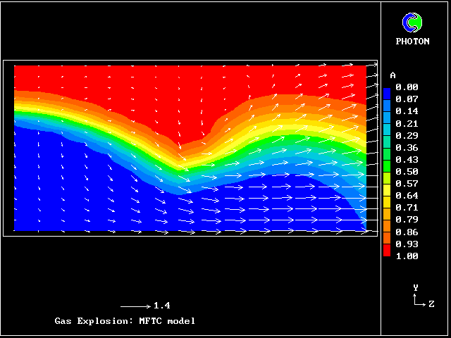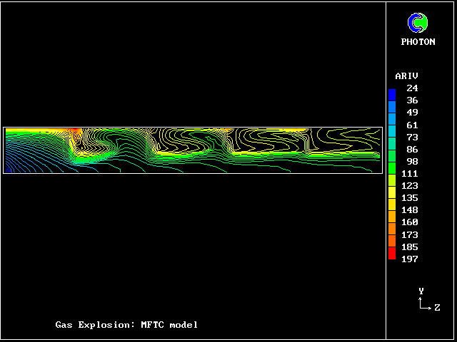 5.3 Transient flame spread in baffled duct (Freeman, Spalding,1995)