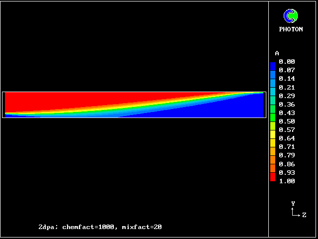 Concentration contours of unburned fluid A, showing the wedge-shaped flame.