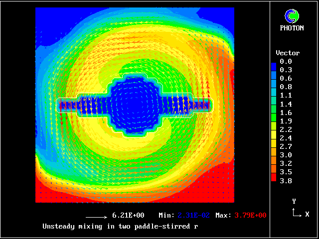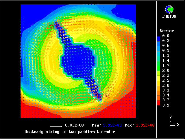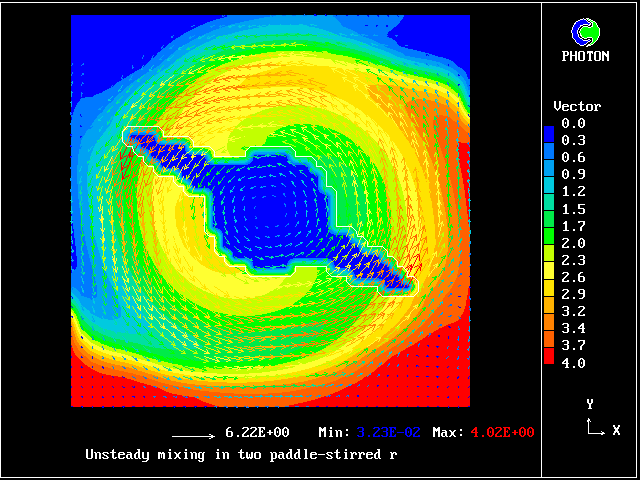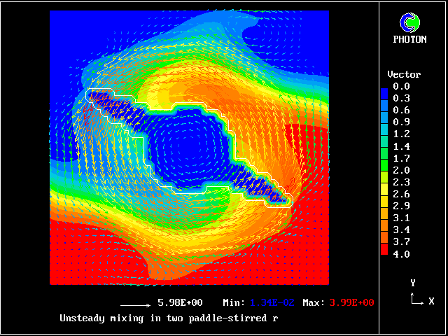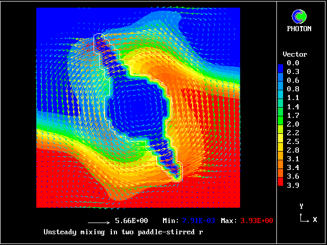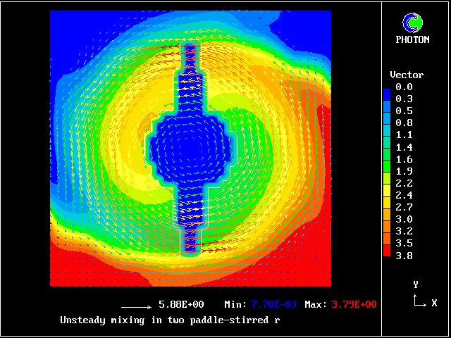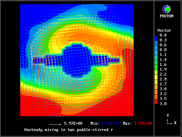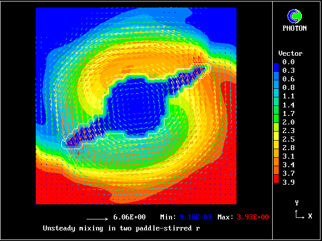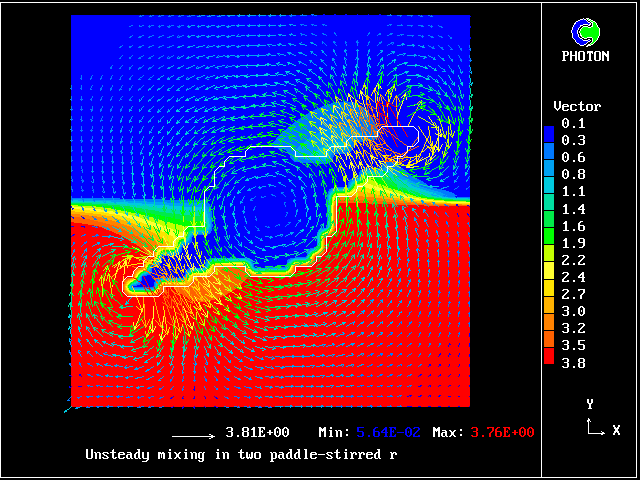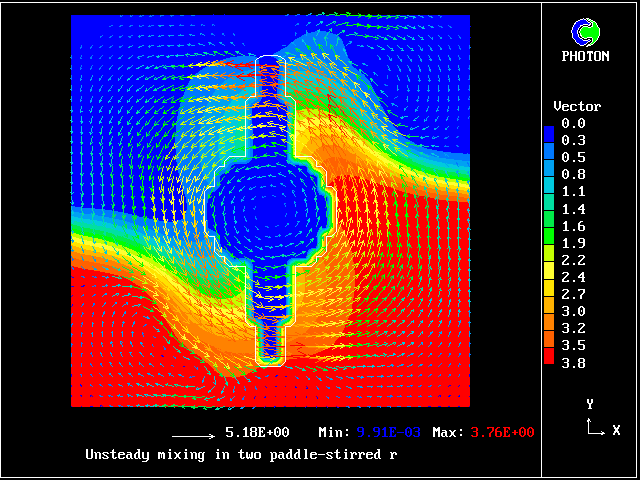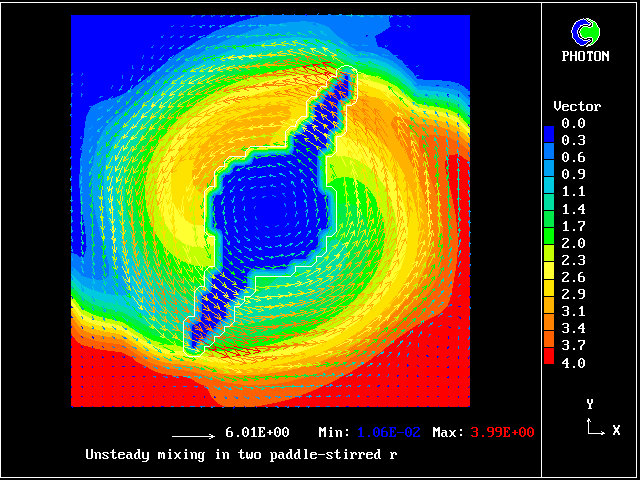 The computational task is to predict the mixing, represented by the subsequent distributions of velocity, pressure and time-average concentration.
