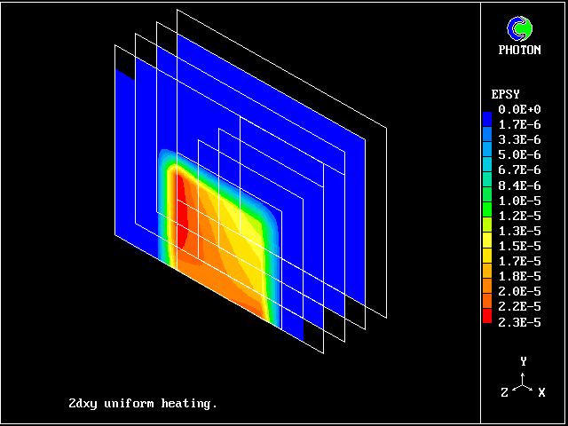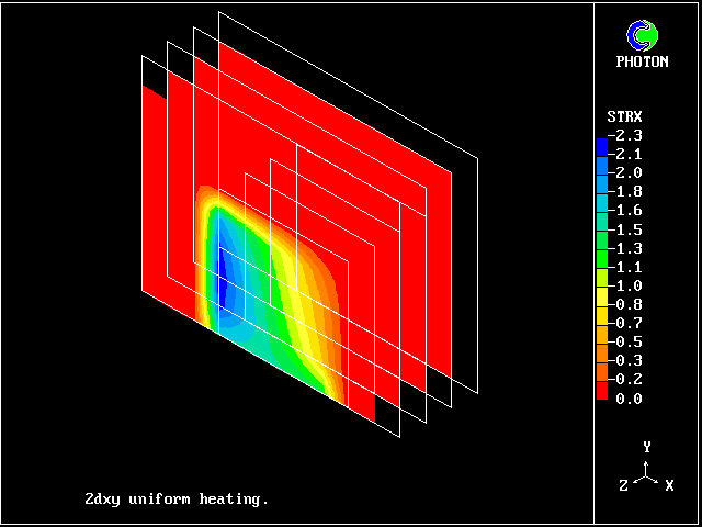 This 3D domain comprises four variants ( one for each Z-slab) of the problem of thermal expansion of solid block placed in the cold stream: